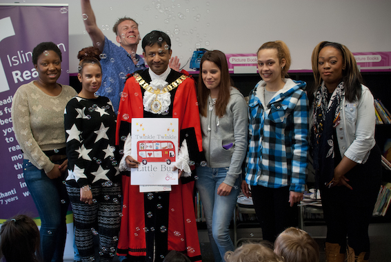 The Mayor of Islington, Councillor Jilani Chowdhury, the Inspire! Young Parents group and Paul Lyalls, Word2013 Poet-in-residence entertained 60 under 5’s, parents and grandparents with stories and songs to launch Twinkle Twinkle Little Bus at Central Library on Friday 10 May. The book, written by the young parents is now available to borrow from all Islington Libraries.