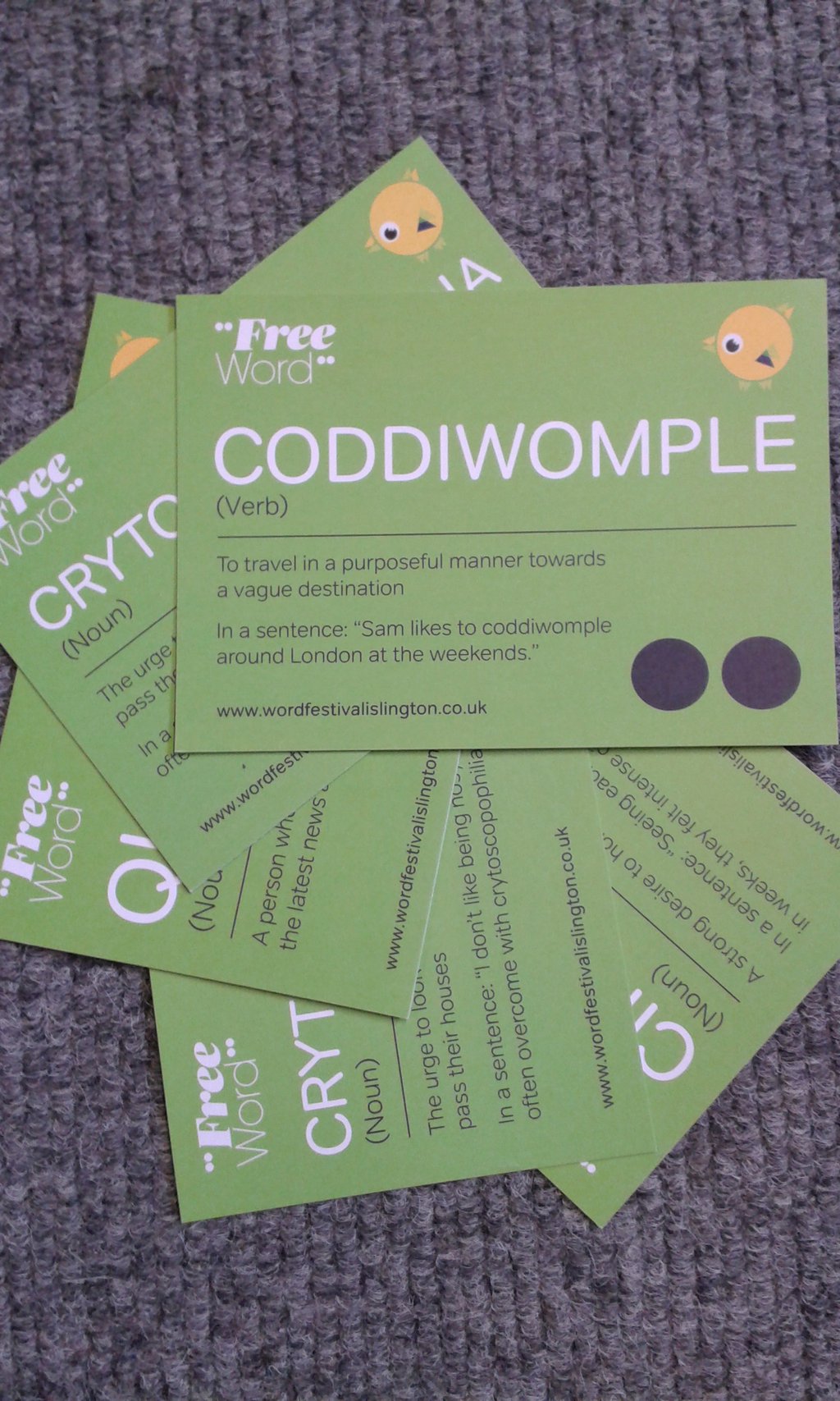 Each week during Word2016 look out for a new Free Word from Free Word Centre. Collect or display 5 words chosen to express the 5 ways to wellbeing on postcards and posters around Islington.