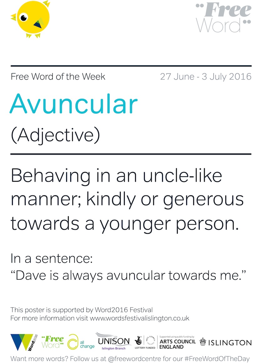 Don’t forget to broaden your lexical horizons this month by spotting Free Words of the Week around the borough – or by displaying them in your own venue! There will be a new word chosen for every week of the festival tying into festival themes and the Five Ways to Wellbeing.