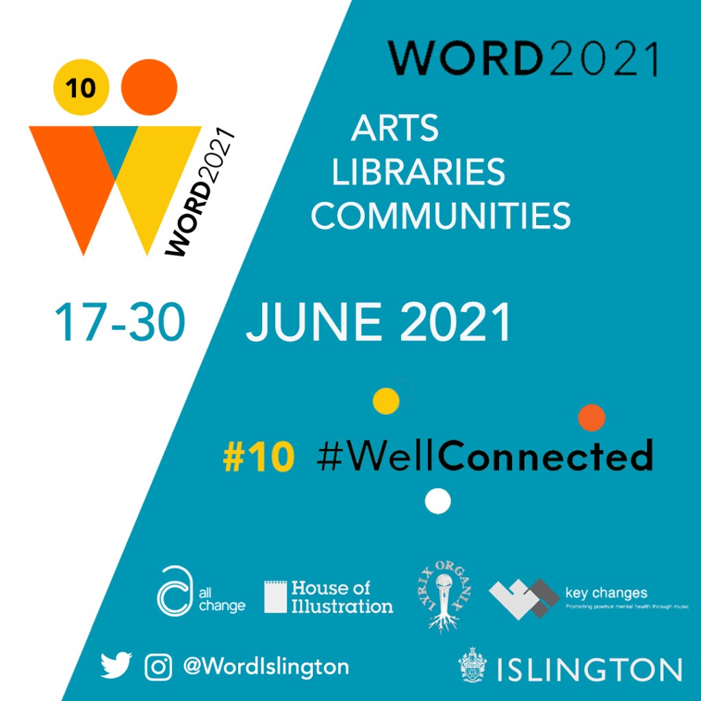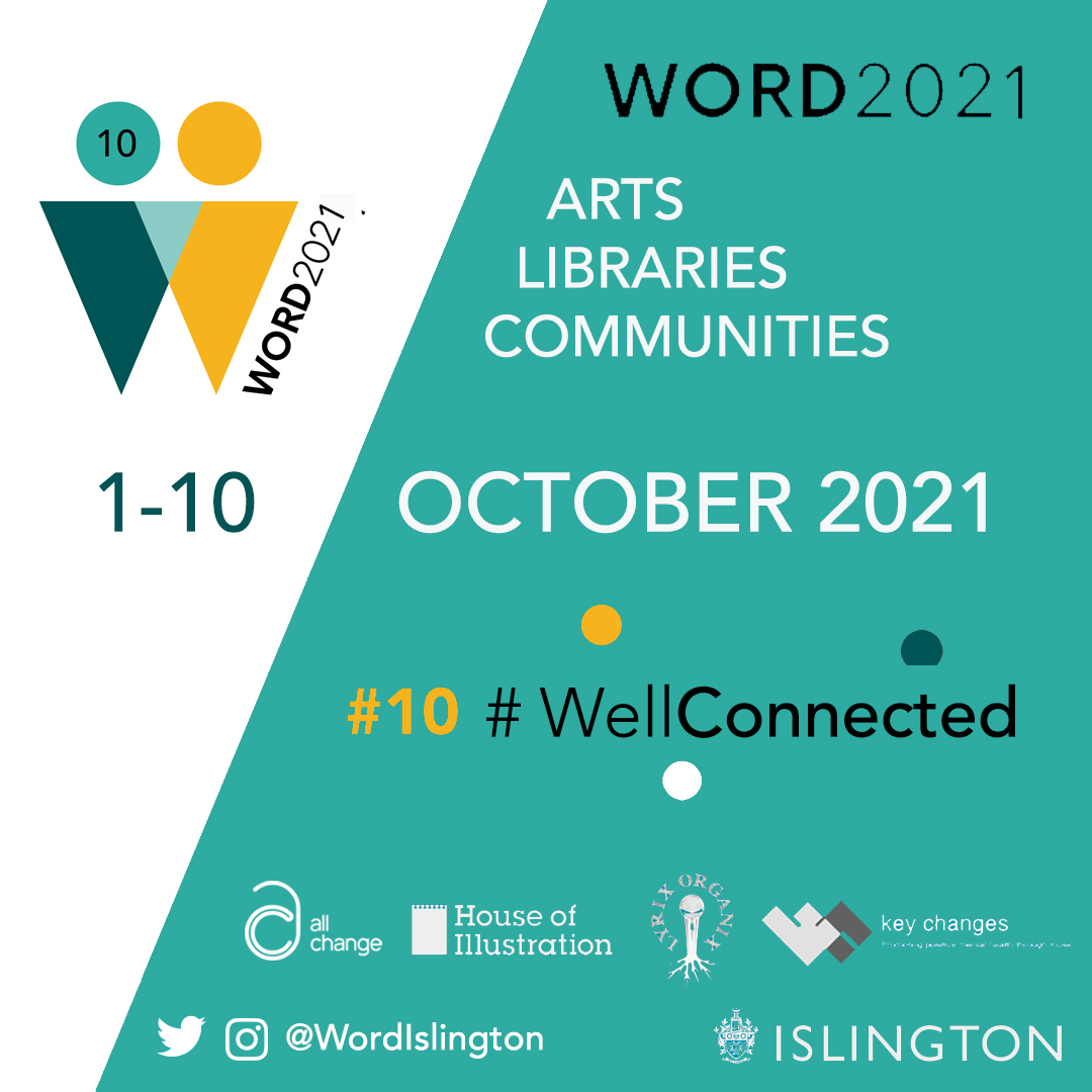 WORD2021 marks year #10 of this unique festival which brings together ARTS, LIBRARIES and COMMUNITIES in Islington. This special 2-part anniversary edition – in June and October 2021- celebrates and shines a spotlight on a range of projects working with communities to make connections, both online and offline – from All Change, Key Changes, Lyrix Organix, House of Illustration, Almeida Theatre, Cubitt Artists and more!